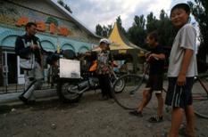 Thomas Ruge bereits während der Dreharbeiten zu ihrem ersten Motorradfilm